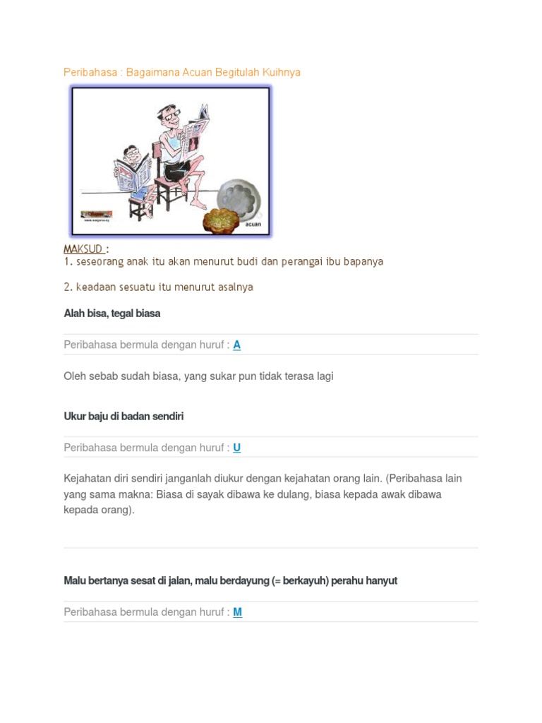 Laman Bahasa Melayu Peribahasa Bagaimana Acuan Begitulah Kuihnya